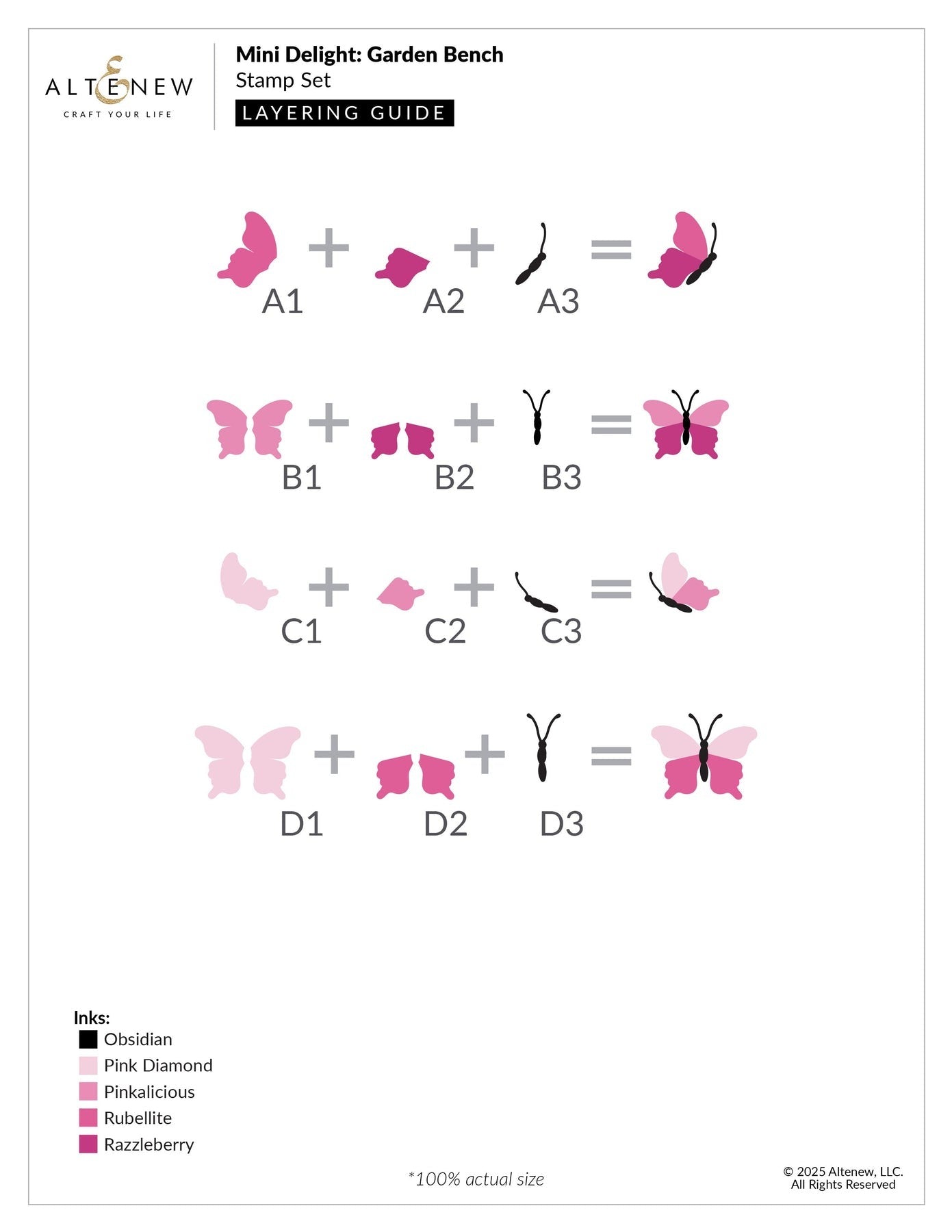 No garden is complete without a cozy bench to enjoy the beauty! The 3" x 4" Mini Delight: Garden Bench Stamp Set includes 4 layering butterflies to adorn the bench from the coordinating die set, plus 2 sentiments to finish your project! There are 14 stamps in this set.