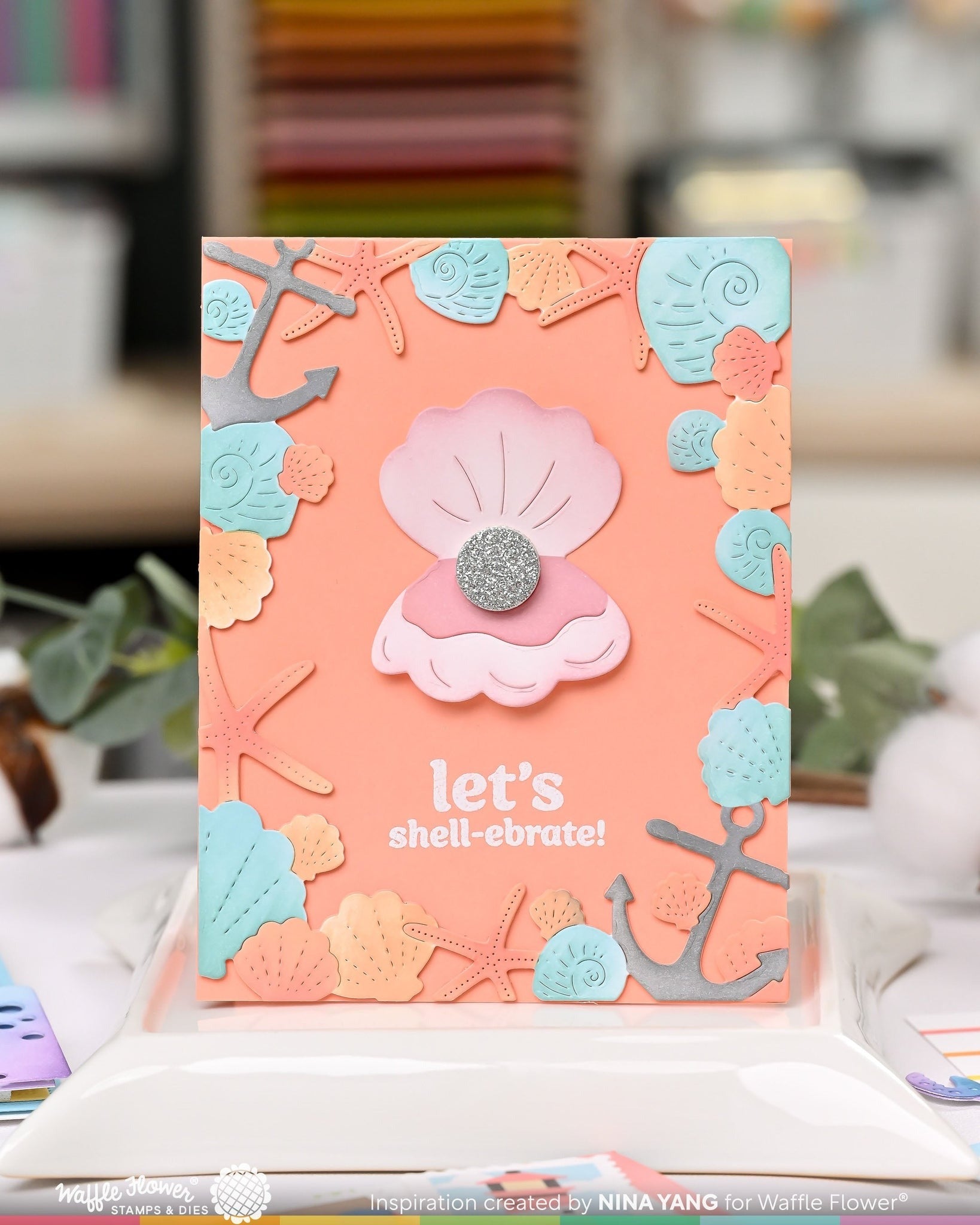 Designed to coordinate with the Seashell Frame Die, this stencil helps you quickly add color to the detailed frame and the open shell with pearl. Great for highlighting the coastal elements and adding depth to your design with ink blending.