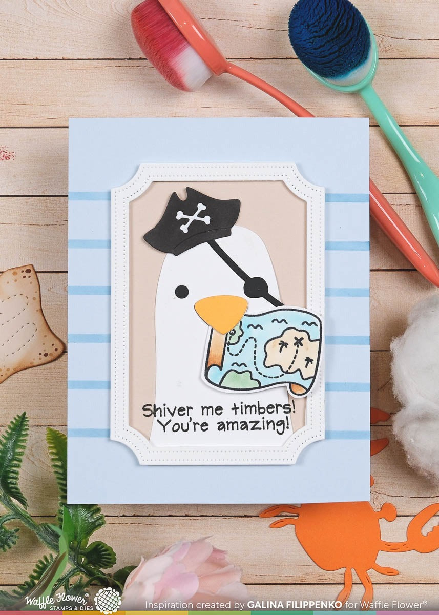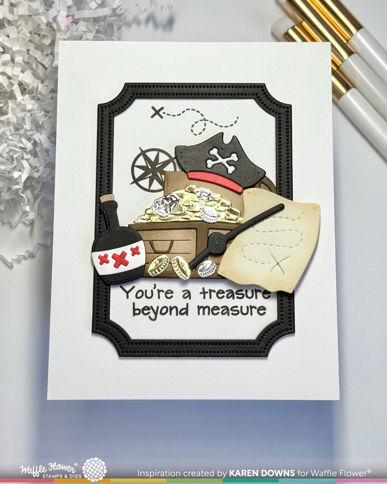 Pair it with the Treasure Hunt Sentiments stamp set for coordinating messages and extra pirate fun!