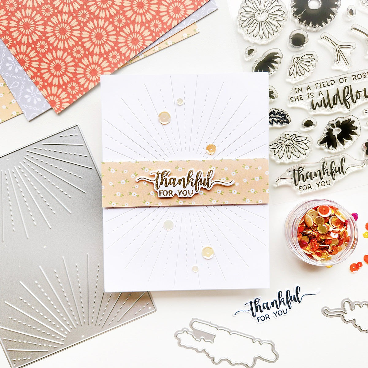 The Dusk 'Til Dawn Cover Plate Die brings the beauty of sunrise and sunset to your creations with its striking, mirrored sunray design. This textured die is perfect for ink blending and makes a stunning backdrop for a variety of card designs. Add a touch of brilliance and versatility to your projects with this must-have cover plate!