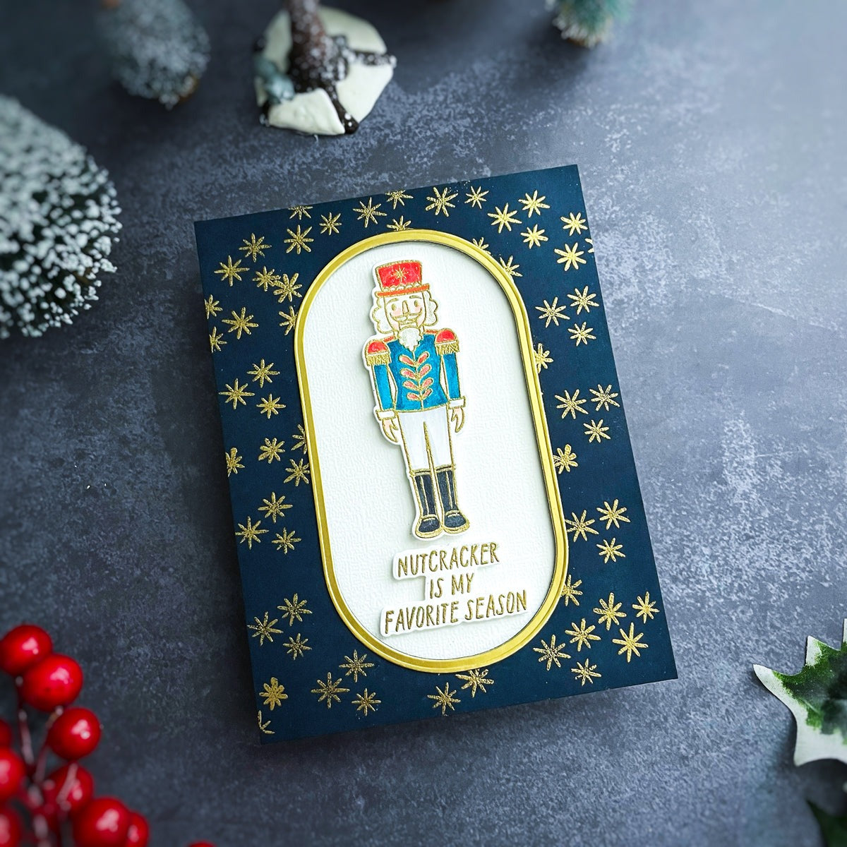 The coordinating dies make it easy to cut out the nutcracker and crackers with precision—perfect for layering, dimension, and standout holiday projects. Pair the playful images with pun-filled greetings like “Son of a Nutcracker!” or “Let’s Have a Cracking Christmas” to create cards, tags, and scrapbook pages that truly pop with personality.