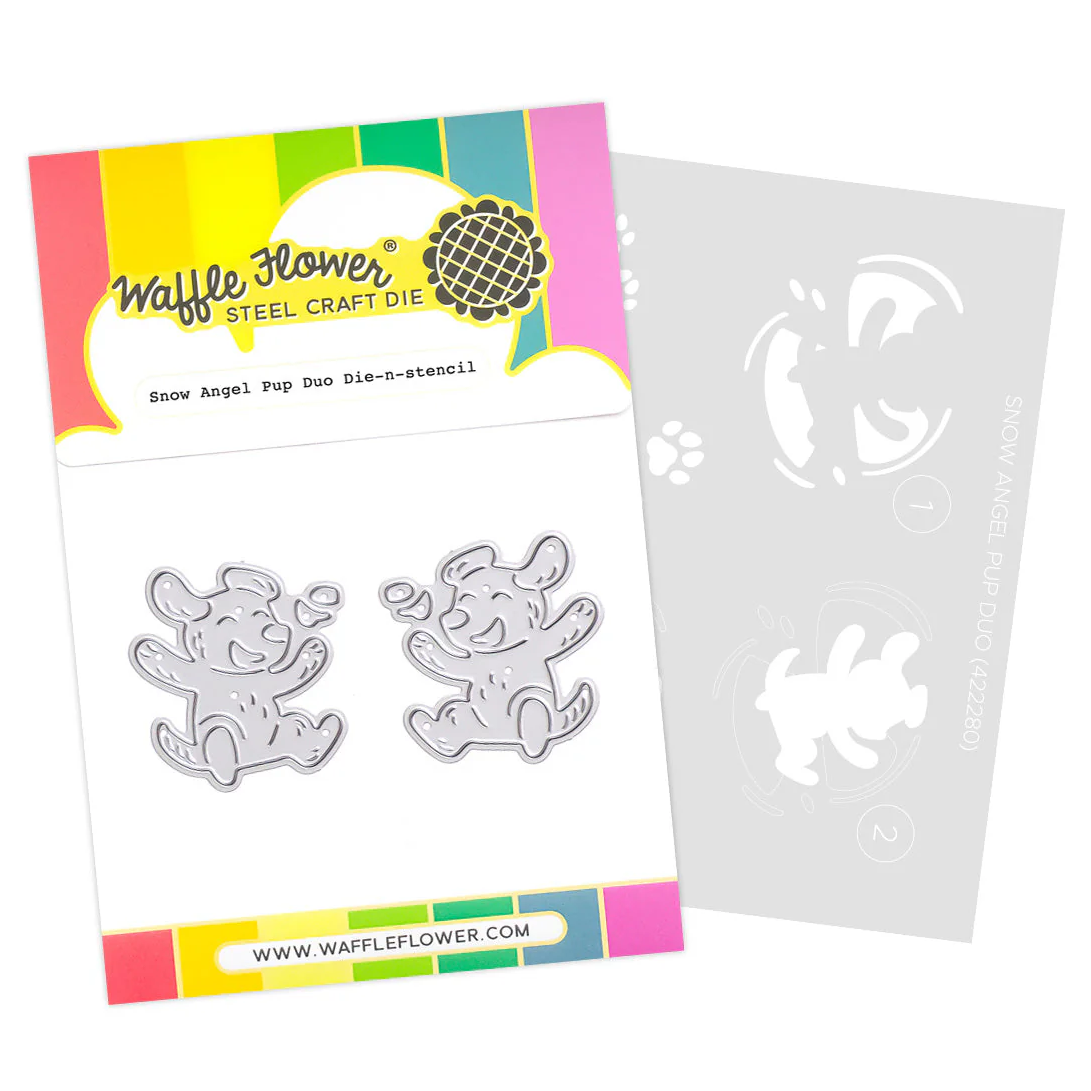 The Snow Angel Pup Duo Die-n-stencil includes two mirrored dogs designed to be colored using the same stencil. Simply flip the stencil to color the dog in the other direction. These playful pups are great for winter cards and add a fun touch to snowy scenes.
