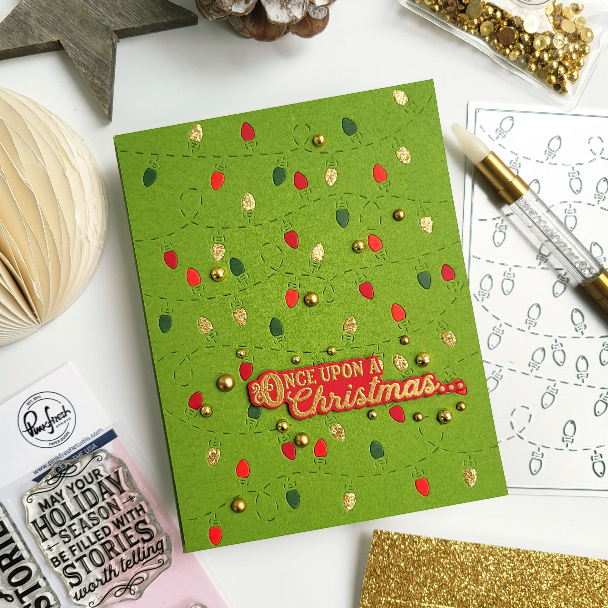 This coverplate die, designed by Kaitlin Sheaffer, brings holiday magic to your projects. Delicate strings of twinkling bulbs weave across your background, adding instant cheer. Layer it over ink-blended backgrounds for a glowing effect that makes your handmade creations sparkle.