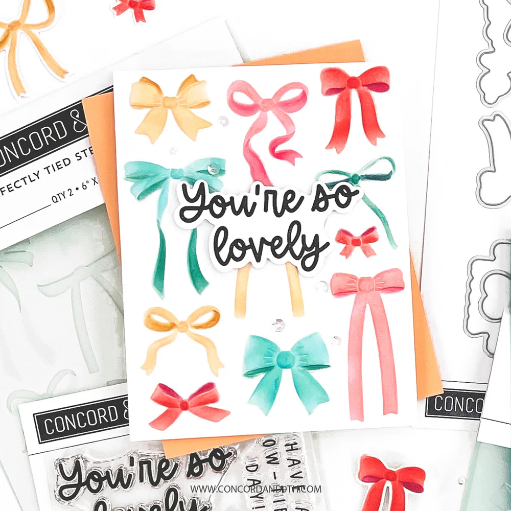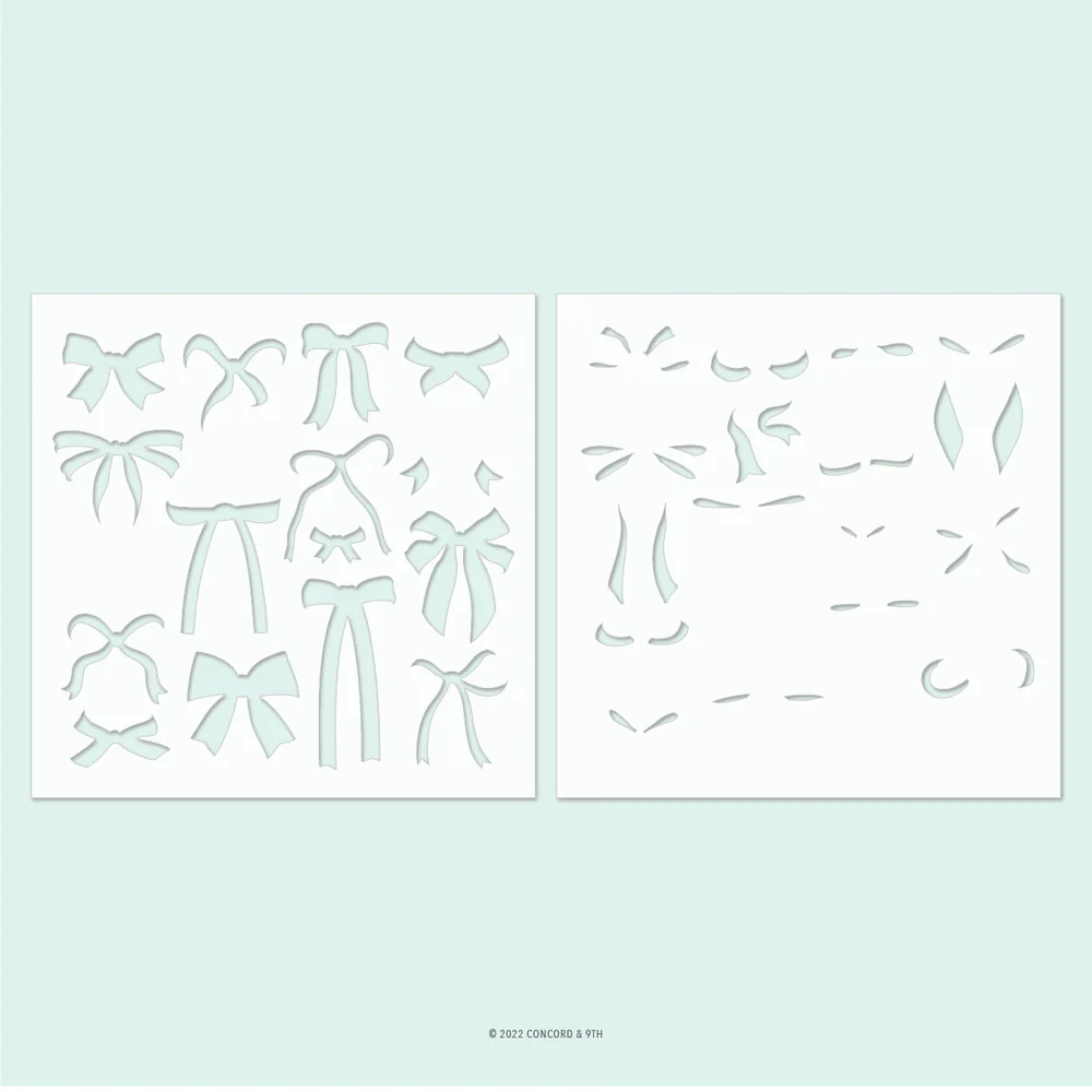 Create effortlessly elegant cards with the Perfectly Tied Stencil Pack. Pair it with the Perfectly Tied Embossing Folder to layer on color and add depth to these beautiful bows and cut them out with the Perfectly Tied Dies! Find a sentiment in the Perfectly Tied Stamp Set to finish your cards in style! Contains two 6” x 6” stencils.