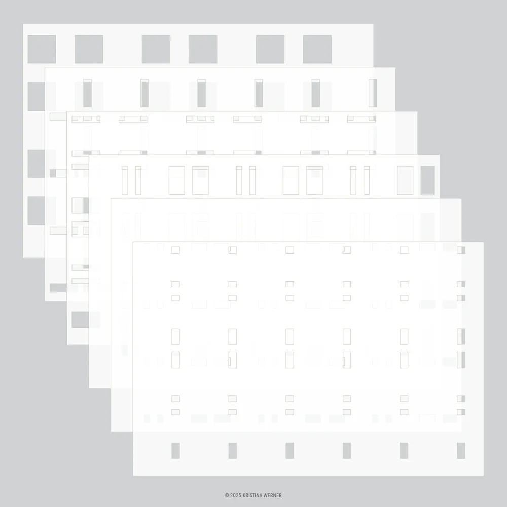 Designed for effortless layering, these stencils allow you to build a classic plaid background with clean lines and endless color combinations. Sized perfectly for A2 cards (4.25” x 5.5”), A7 cards (5” x 7”) and even larger projects. Six 6” x 9” stencils.