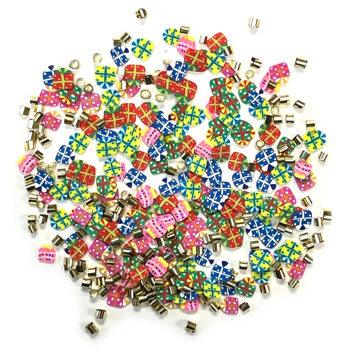 Tiny polymer clay embellishments for crafts. Glue onto almost any surface or use a shaker filler. This package contains 12g of assorted of embellishments.